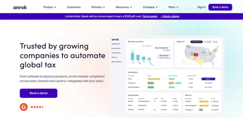 Anrokの強みは、SaaSビジネスモデルへの特化に尽きます。Stripeなどの決済基盤や請求システムと連携し、世界中の税制変更をリアルタイムで追跡。顧客の所在地に基づいて正しい税率を瞬時に計算し、徴収から納税申告(ファイリング)までを全自動化します。